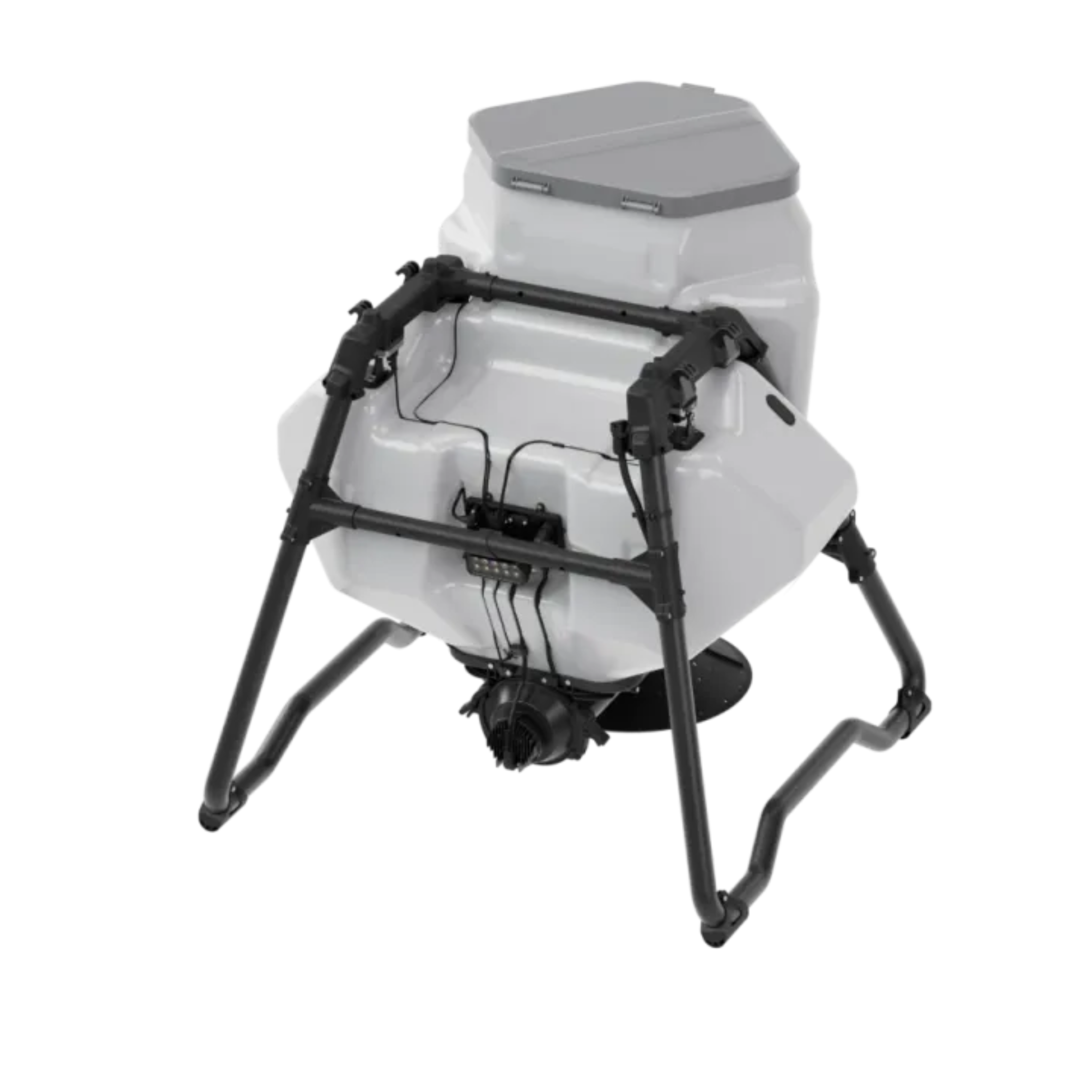 With a 150L hopper, the drone spreads seeds, fertilizer, and granules at 400kg per minute. It has an adjustable spread width and an anti-clog feeder.